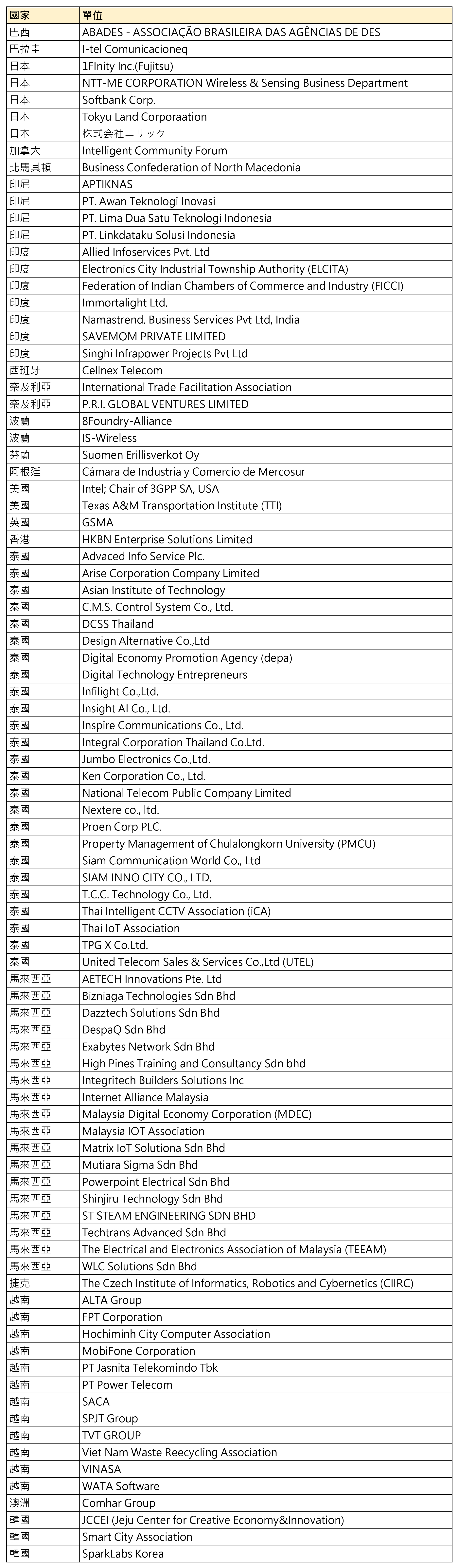 海外電信商、系統整合商、協會名單詳細名單請見下方