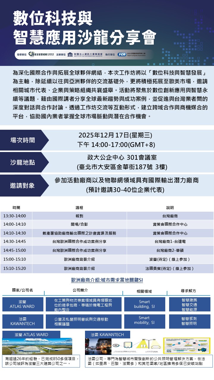 期待您的蒞臨,與波蘭和法國的貴賓一同交流並開發商機!