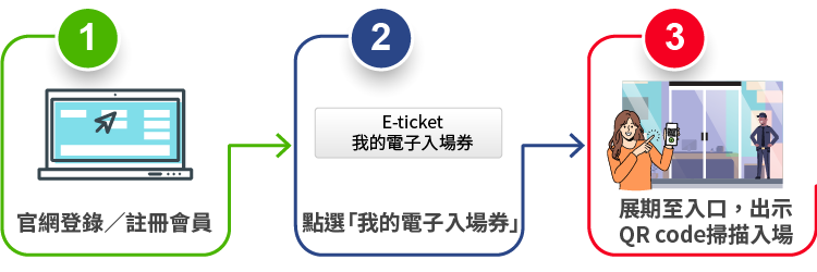 可至本展網站 (https://smartcity.org.tw/m_login.php) 預先登錄報名後,取得入場 QR code,展期間憑入場QRCode無須換證直接掃描入場。